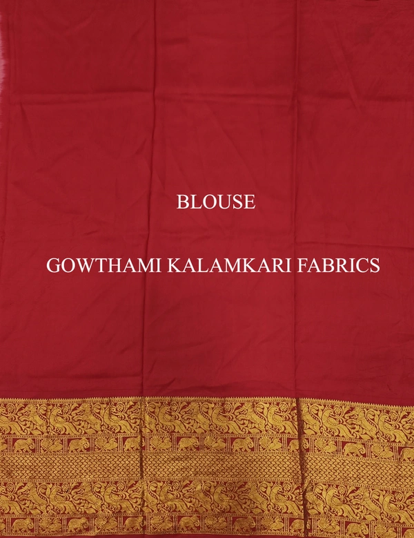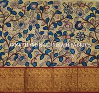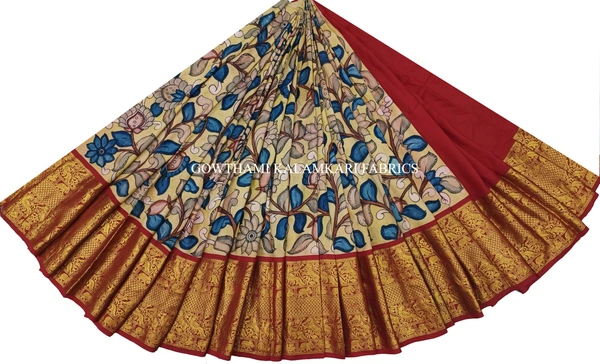 THE REAL FLORAL HAND PAINTED PEN KALAMKARI WITH ONE SIDE KANCHI BIG BORDER PURE PATTU LEHENGA.