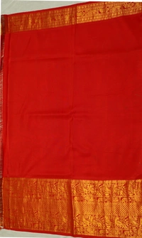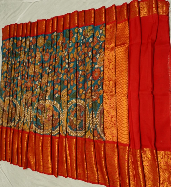 KALAMKARI HAND PAINTED KANCHI BIG BORDER FLORAL SAREE -KHPPPKBBFS017