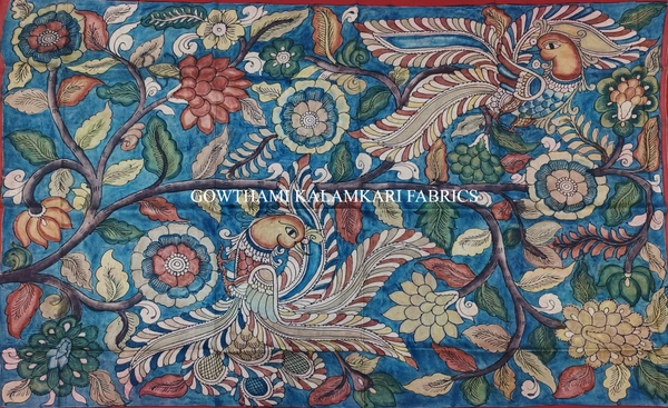 THE REAL FLORAL  HAND PAINTED PEN KALAMKARI WITH KANCHI BORDER DUPATTA