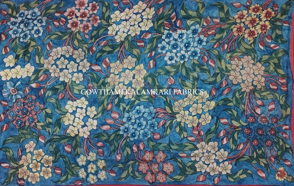 THE REAL FLORAL  HAND PAINTED PEN KALAMKARI WITH KANCHI BORDER DUPATTA