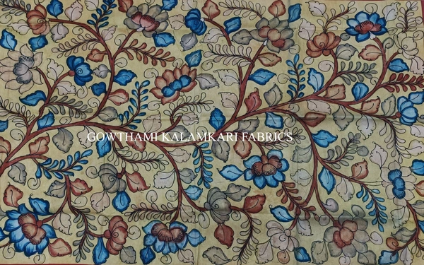 THE REAL FLORAL  HAND PAINTED PEN KALAMKARI WITH KANCHI BORDER DUPATTA