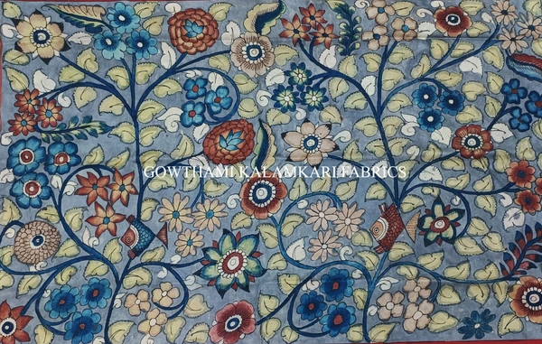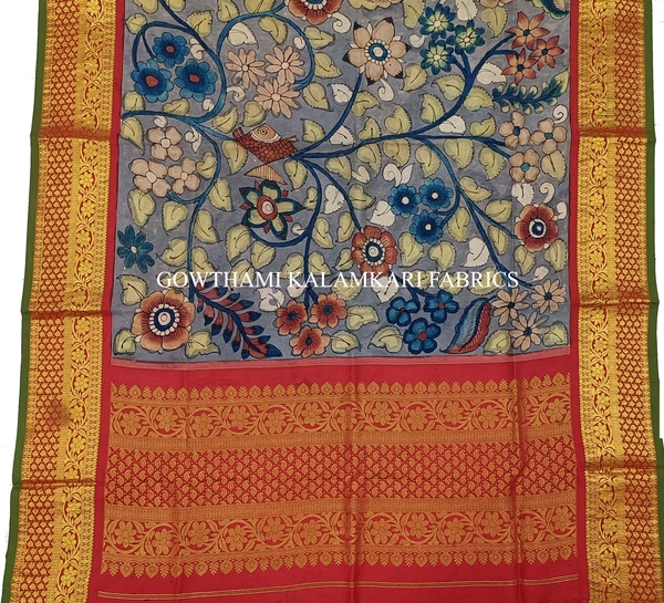 THE REAL FLORAL  HAND PAINTED PEN KALAMKARI WITH KANCHI BORDER DUPATTA