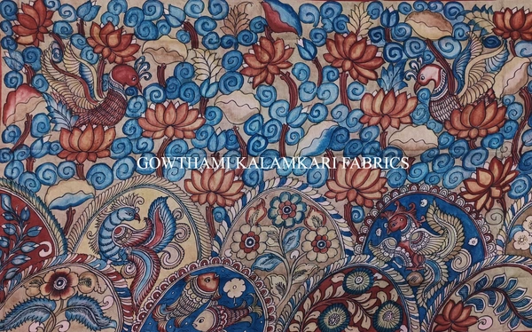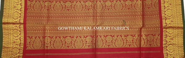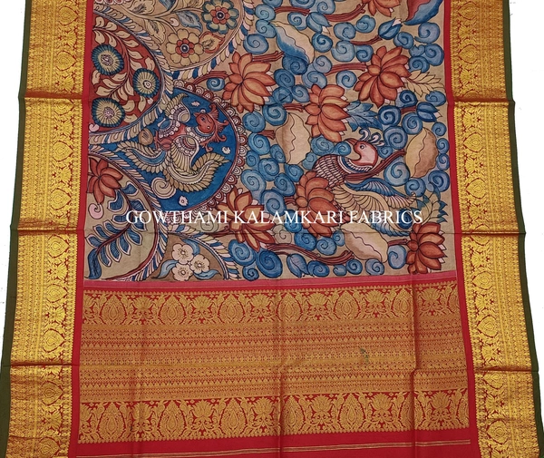 THE REAL FLORAL  HAND PAINTED PEN KALAMKARI WITH KANCHI BORDER DUPATTA