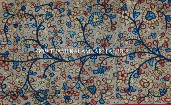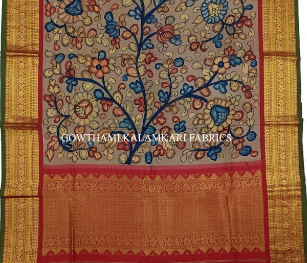 THE REAL FLORAL  HAND PAINTED PEN KALAMKARI WITH KANCHI BORDER DUPATTA