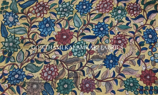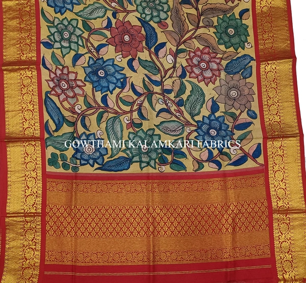 THE REAL FLORAL  HAND PAINTED PEN KALAMKARI WITH KANCHI BORDER DUPATTA