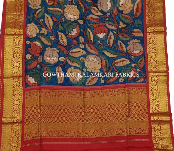 AN INCREDIBLE DESIGN FOR TRADITIONAL WORKTHE REAL FLORAL HAND PAINTED PEN KALAMKARI WITH KANCHI BORDER DUPATTA