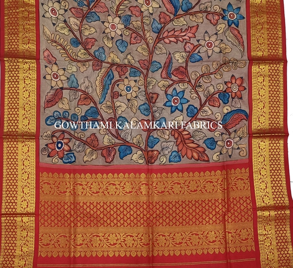 THE REAL FLORAL  HAND PAINTED PEN KALAMKARI WITH KANCHI BORDER DUPATTA