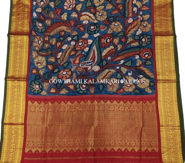 THE REAL FLORAL  HAND PAINTED PEN KALAMKARI WITH KANCHI BORDER DUPATTA