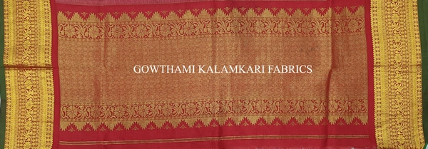 KALAMKARI HAND PAINTED KANCHI BORDER DUPATTA -KHPKBD044