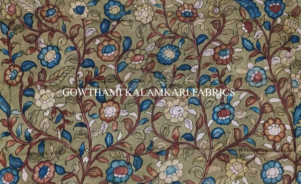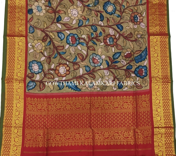 THE REAL FLORAL  HAND PAINTED PEN KALAMKARI WITH KANCHI BORDER DUPATTA