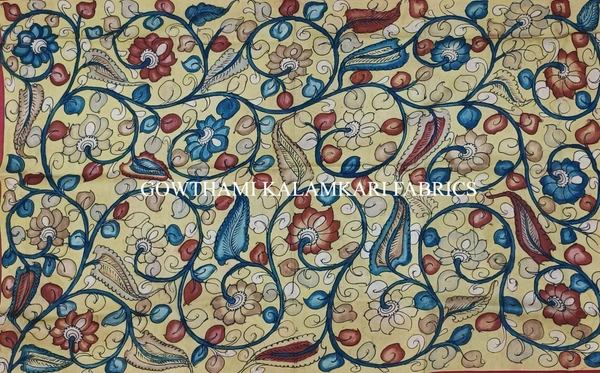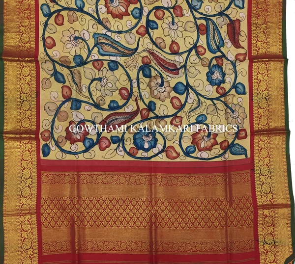 THE REAL FLORAL  HAND PAINTED PEN KALAMKARI WITH KANCHI BORDER DUPATTA