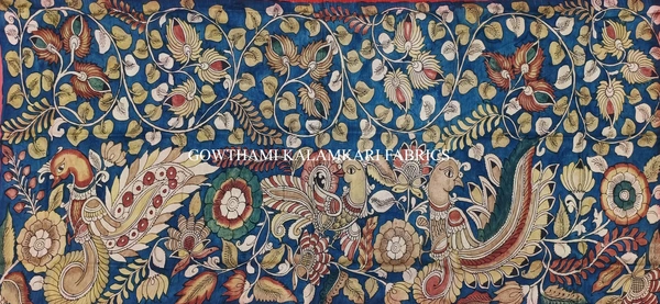 THE REAL FLORAL  HAND PAINTED PEN KALAMKARI WITH KANCHI BORDER DUPATTA