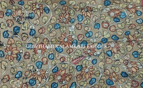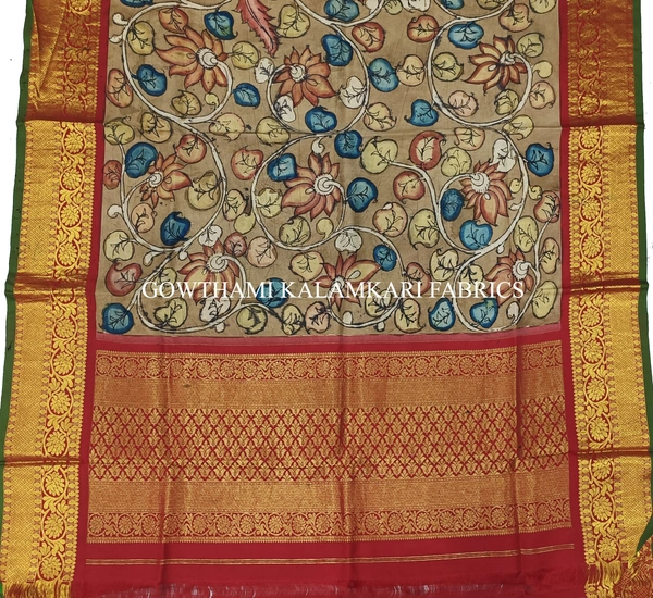 THE REAL FLORAL  HAND PAINTED PEN KALAMKARI WITH KANCHI BORDER DUPATTA