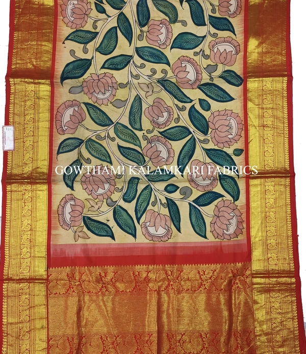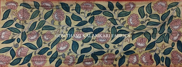 THE REAL FLORAL  HAND PAINTED PEN KALAMKARI WITH KANCHI BORDER DUPATTA