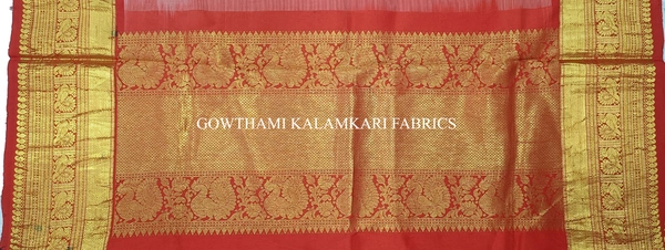 KALAMKARI HAND PAINTED KANCHI BORDER DUPATTA -KHPKBD061