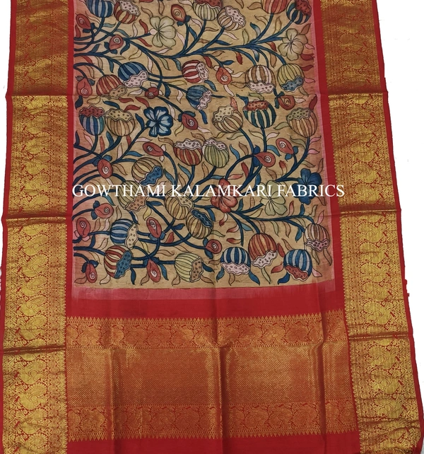 THE REAL FLORAL  HAND PAINTED PEN KALAMKARI WITH KANCHI BORDER DUPATTA