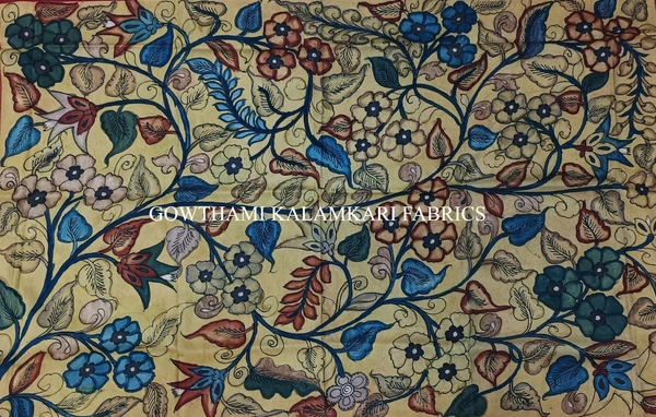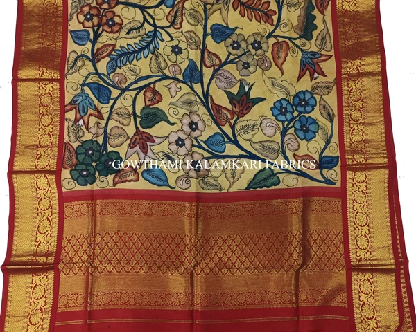 THE REAL FLORAL  HAND PAINTED PEN KALAMKARI WITH KANCHI BORDER DUPATTA