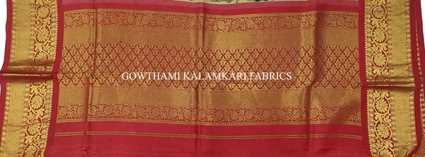 KALAMKARI HAND PAINTED KANCHI BORDER DUPATTA -KHPKBD069