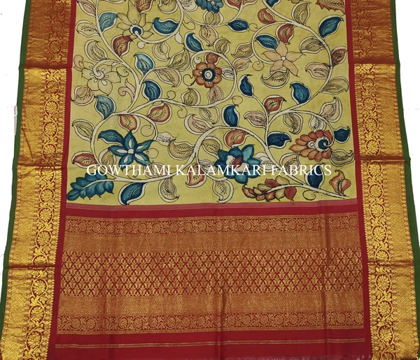 THE REAL FLORAL  HAND PAINTED PEN KALAMKARI WITH KANCHI BORDER DUPATTA