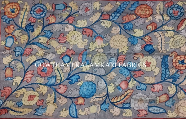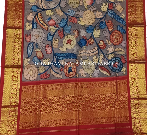 THE REAL FLORAL  HAND PAINTED PEN KALAMKARI WITH KANCHI BORDER DUPATTA