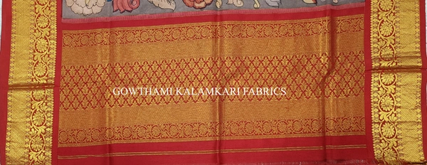 KALAMKARI HAND PAINTED KANCHI BORDER DUPATTA -KHPKBD071