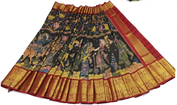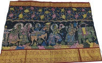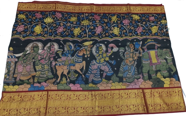 KALAMKARI HAND PAINTED KANCHI BORDER STORY SAREE - KHPKBSS005