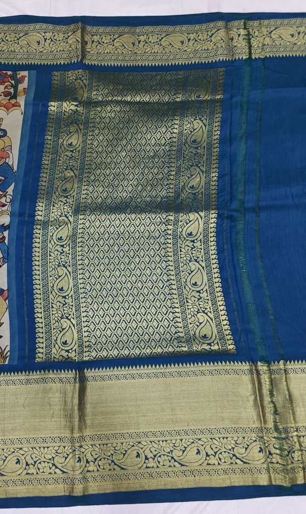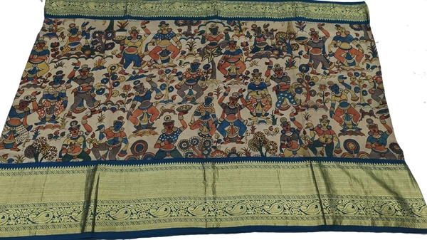 KALAMKARI HAND PAINTED KANCHI BORDER STORY SAREE - KHPKBSS009