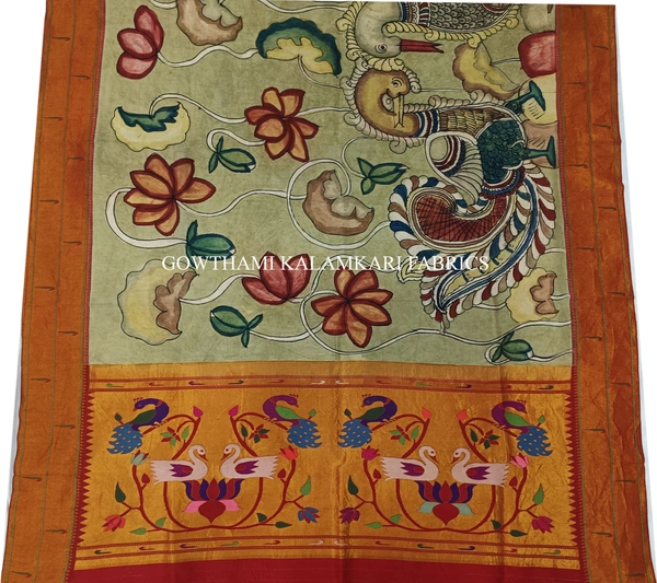 THE REAL FLORAL  HAND PAINTED PEN KALAMKARI WITH PAITHANI BORDER DUPATTA