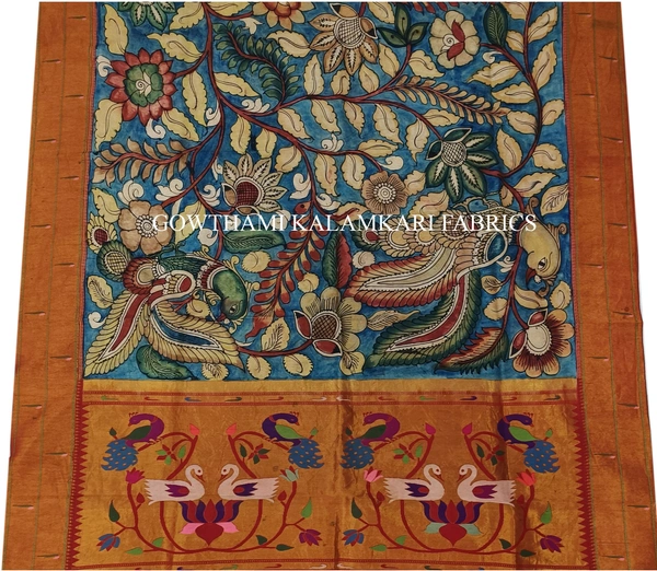 THE REAL FLORAL  HAND PAINTED PEN KALAMKARI WITH PAITHANI BORDER DUPATTA