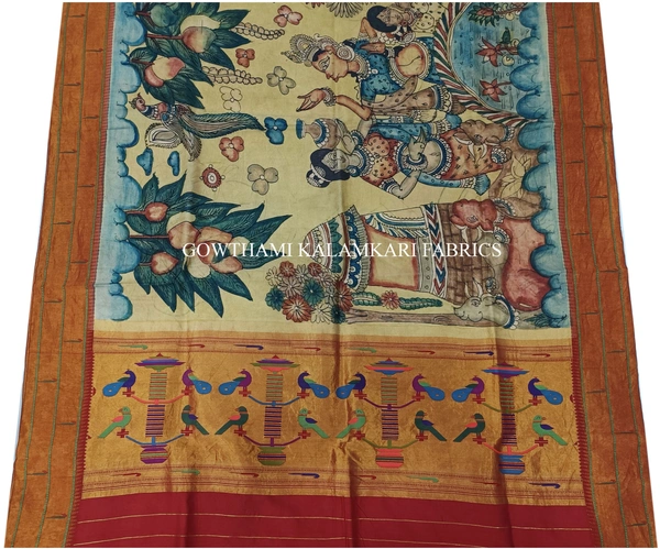 THE REAL STORY WORK  HAND PAINTED PEN KALAMKARI WITH PAITHANI BORDER DUPATTA