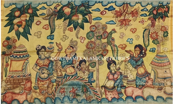 KALAMKARI HAND PAINTED PAITHANI BORDER DUPATTA -KHPPBD005