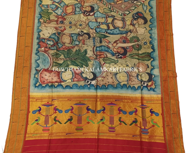 THE REAL STORY WORK  HAND PAINTED PEN KALAMKARI WITH PAITHANI BORDER DUPATTA