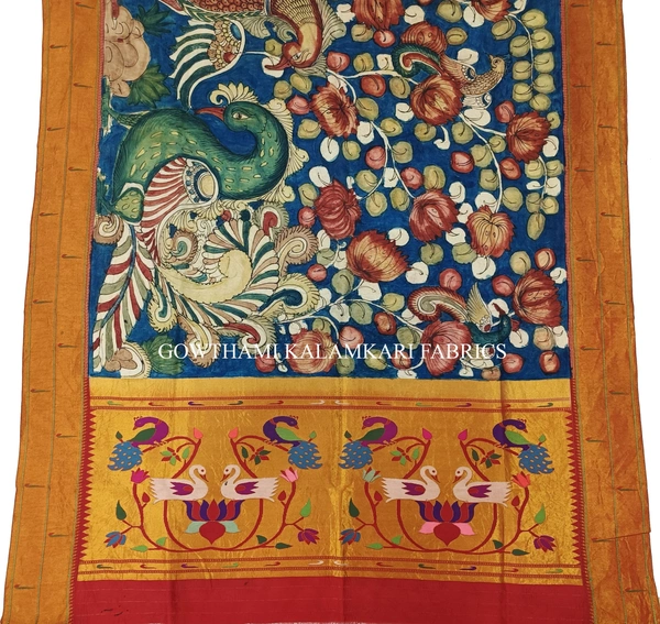 THE REAL FLORAL  HAND PAINTED PEN KALAMKARI WITH PAITHANI BORDER DUPATTA