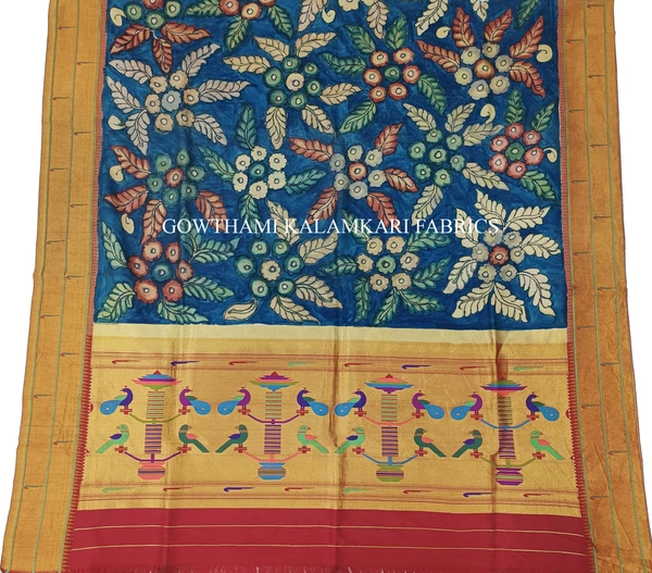 THE REAL FLORAL  HAND PAINTED PEN KALAMKARI WITH PAITHANI BORDER DUPATTA