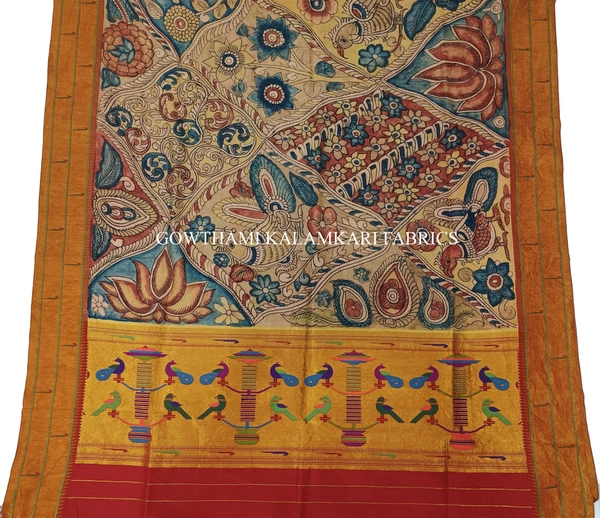 THE REAL FLORAL  HAND PAINTED PEN KALAMKARI WITH PAITHANI BORDER DUPATTA