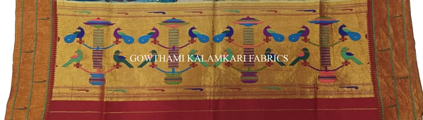 KALAMKARI HAND PAINTED PAITHANI BORDER DUPATTA -KHPPBD017