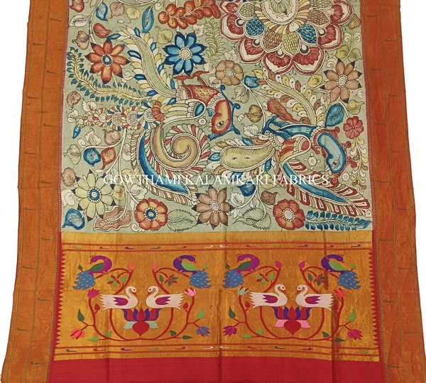 THE REAL FLORAL  HAND PAINTED PEN KALAMKARI WITH PAITHANI BORDER DUPATTA