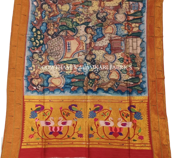 THE REAL STORY WORK  HAND PAINTED PEN KALAMKARI WITH PAITHANI BORDER DUPATTA