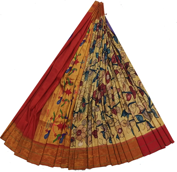 KALAMKARI HAND PAINTED PAITHANI FLORAL SAREE -KHPPFS001
