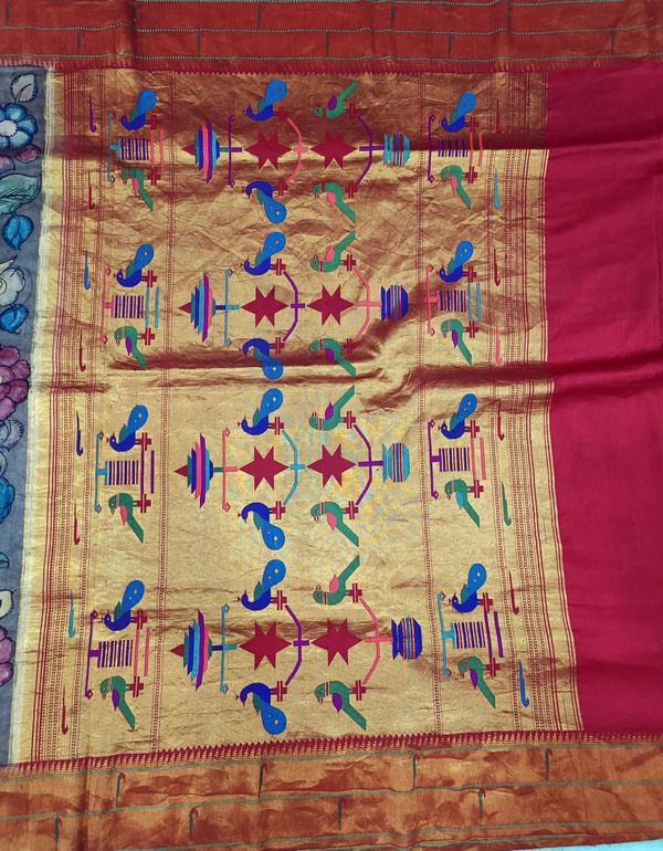 KALAMKARI HAND PAINTED PAITHANI FLORAL SAREE -KHPPFS003