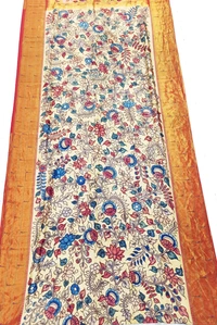 THE REAL FLORAL HAND PAINTED PEN KALAMKARI WITH PAITHANI BORDER PURE PATTU DOUBLE WARP SAREES, AN AUTHENTIC HAND WOVEN PAITHNI PALLU