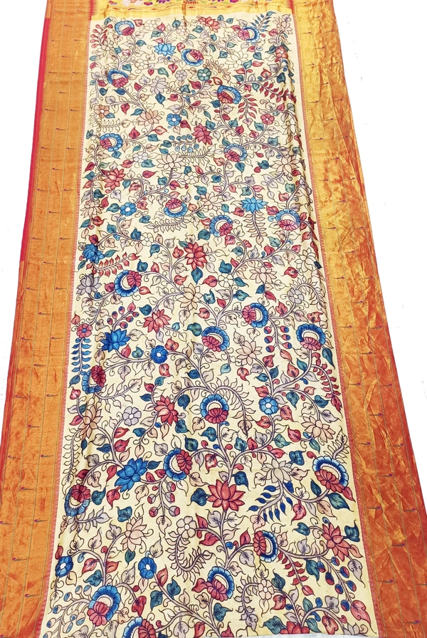 KALAMKARI HAND PAINTED PAITHANI FLORAL SAREE -KHPPFS012
