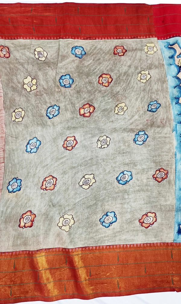THE REAL FLORAL HAND PAINTED PEN KALAMKARI WITH PAITHANI BORDER PURE PATTU DOUBLE WARP STORY SAREES, AN AUTHENTIC HAND WOVEN PAITHNI PALLU