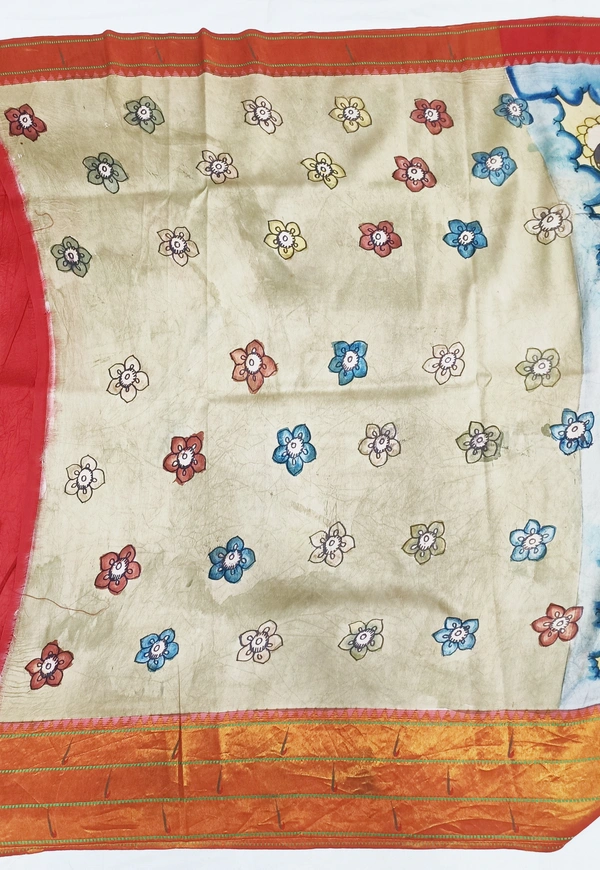THE REAL FLORAL HAND PAINTED PEN KALAMKARI WITH PAITHANI BORDER PURE PATTU DOUBLE WARP STORY SAREES, AN AUTHENTIC HAND WOVEN PAITHNI PALLU
