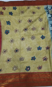 THE REAL FLORAL HAND PAINTED PEN KALAMKARI WITH PAITHANI BORDER PURE PATTU DOUBLE WARP STORY SAREES, AN AUTHENTIC HAND WOVEN PAITHNI PALLU