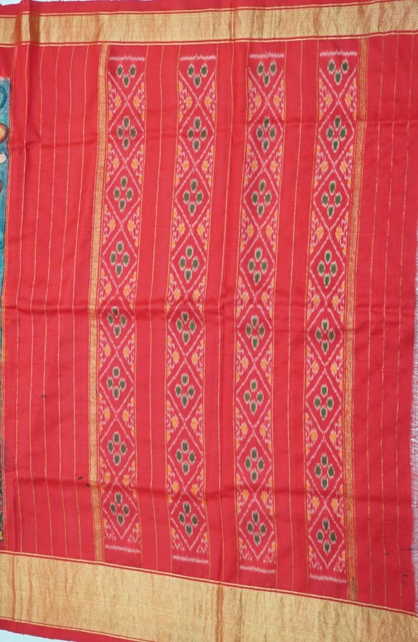 POCHAMPALLY WITH KALAMKARI HAND PAINTED PURE PATTU FLORAL SAREE -PKHPPPFS-001