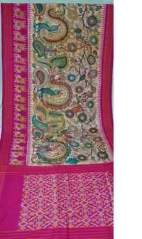 POCHAMPALLY WITH KALAMKARI HAND PAINTED PURE PATTU FLORAL SAREE -PKHPPPFS-004
